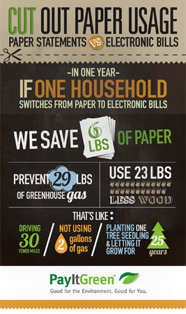 So you’ve gone green and signed up for e-statements. Kudos to you! Here’s how going paperless helps the environment, compliments of http://payitgreen.org/