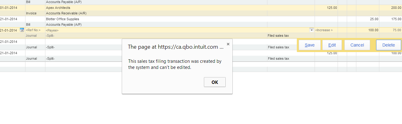 6. You cannot modify or delete the journal entry that QuickBooks creates when you file a sales tax return.