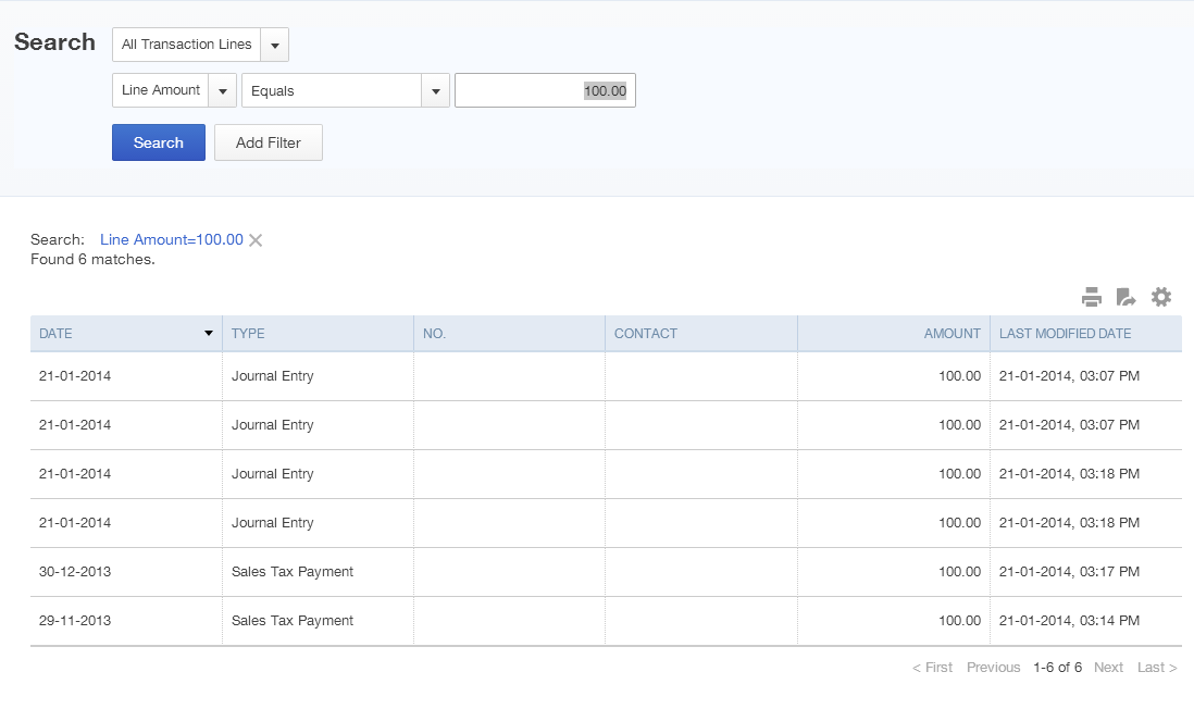10. Made a mistake on your payment and need to change it? You need to delete and re-enter it. But you won’t be able to access the payment from the registers (here you can only view it). You also won’t be able to access it from the View History section of the Sales Tax module. Instead, do this. Use the Advanced Search feature to search for the amount of the payment (see below for suggested filters). Click once on the transaction to open, select delete payment, confirm, then start over using the instructions in #8.